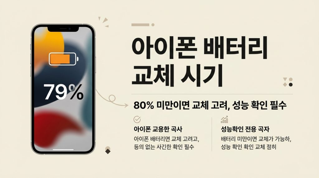 배터리 성능 상태 수치와 일상에서 느끼는 증상을 함께 보는 것이 교체 시기를 판단하는 데 도움이 됩니다.